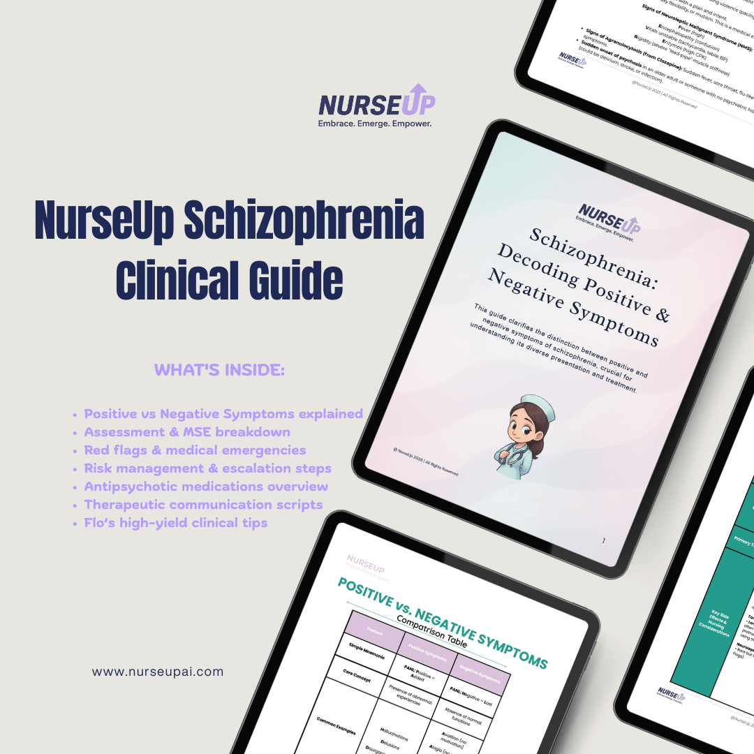 Introducing The NurseUp Clinical Guide to Schizophrenia. This isn't just study notes; it's a clinical roadmap. We’ve decoded the DSM-5-TR criteria and packaged it into a 12-page visual companion.